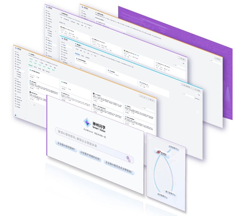 打通GenAI落地企业的算力、、模型、、知识、、、、应用四大要素,,,,综合解决GenAI工程在选、、、练、、、用、、管四大环节的问题,,旨在为企业的数智化转型提供全套的GenAI智能应用工程流水线。。。。广发体育问学包括模型算力管理平台、、、、企业私域知识管理平台、、、、AI应用工程平台三大模块,,为企业提供更先进、、、更匹配的大模型,,,解决了算力上信创适配、、、融合调度、、、企业私域大模型高效推理训练问题,,,,同时解决了数据到知识的向量化以及场景应用的轻量化组装问题。。。