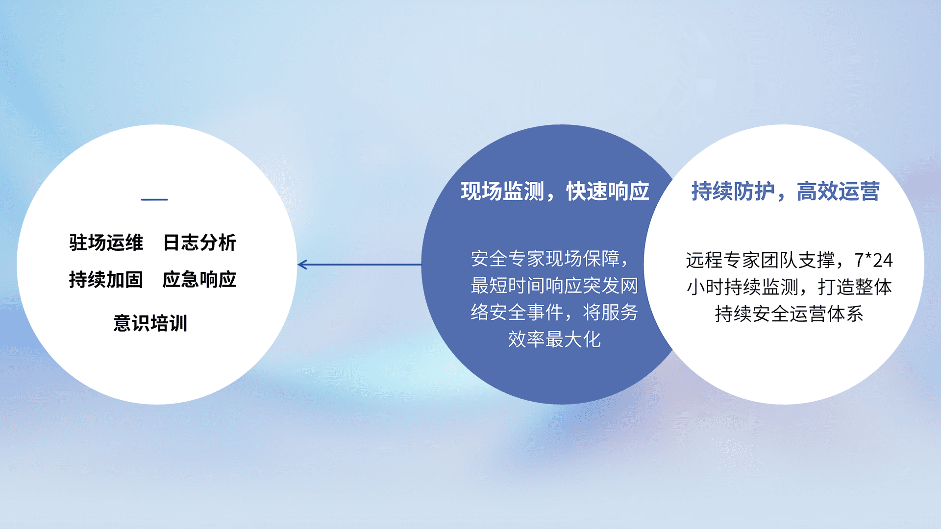 7X24小时持续监测安全事件,保持安全策略有效性,降低资产脆弱性风险,,,,精准拦截黑客攻击,,,,减少被黑客利用的机会,,第一时间遏制,,降低损失。。